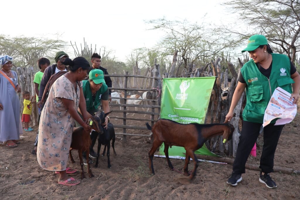 En el marco de las acciones para prevenir la desnutrición y fortalecer la seguridad alimentaria en el territorio, el Bienestar Familiar, a través del Servicio Integrado de Atención y Prevención de la Desnutrición (SIAPD) y en trabajo conjunto con Wale-keru IPSI, entregó a 25 familias de la comunidad de Sarrutsira, unidades productivas caprinas.